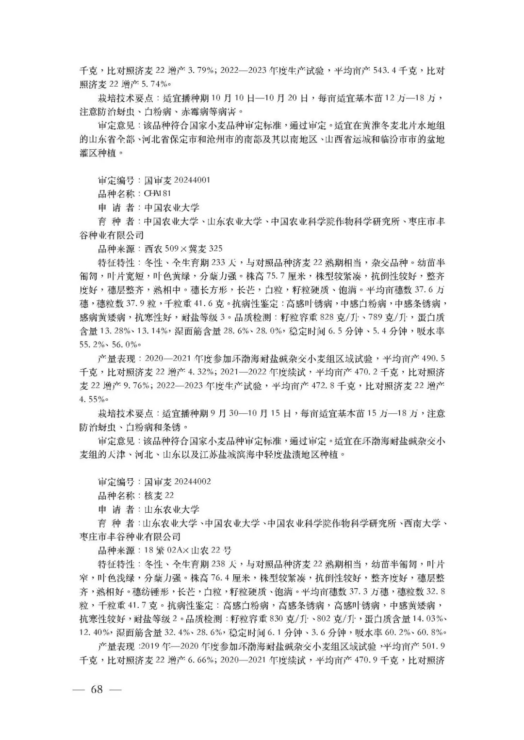 二是凸起抗逆抗病,支捏农业防灾减灾。中科1878、国红11、宁麦41、华麦25、扬麦46、长江麦580等6个品种对赤霉病抗性达到中抗水平;郑麦1905对条锈病抗性达到高抗水平,郑石9170、尚农9对条锈病抗性达到中抗水平;衡麦32、济麦37、山农55、万丰826、品育8175、山农57、临旱11号、运旱1818、中麦98、CHA181等10个品种发达出广泛的抗寒性。现在,我国长江中卑鄙和黄淮南片麦区小麦抗性改良进展显耀,可更好应付病害、冻害天气对小麦产量的影响。此外,还有CHA181、核麦22、京麦18、京麦218等4个耐盐碱小麦品种通过果断,可顺应一些轻中度盐碱耕地栽种。