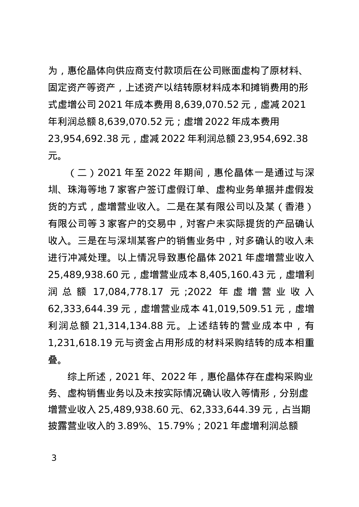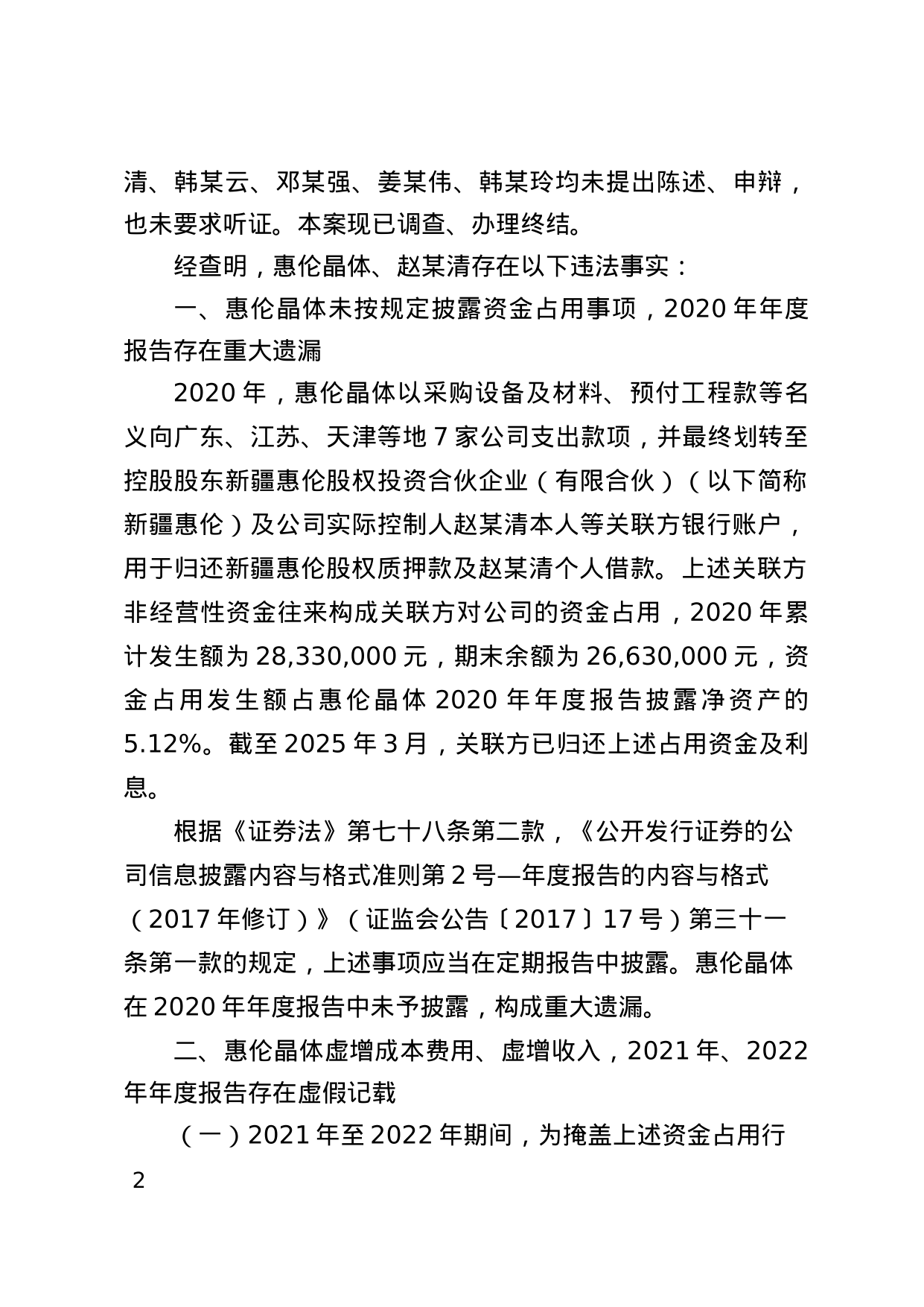 决定书涌现,惠伦晶体存在以下行恶事实:惠伦晶体未按划定涌现资金占用事项,2020年年度融会存在紧要遗漏;惠伦晶体虚增老本用度,虚增收入,2021年,2022年年度融会存在非常记录。