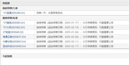 2月18日,1家公司临停:*ST信通(来回相等波动)。